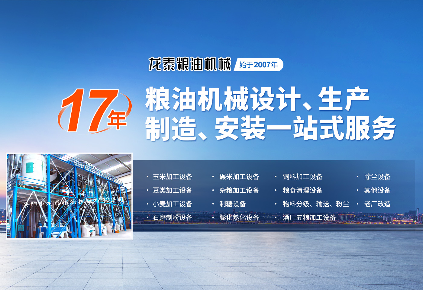 安陽市龍泰糧油機械有限公司是一個集糧油機械設計、生產制作、安裝于一體的設備制造商。公司坐落于農業生產基地河南省安陽市。多年來,公司與科研機構建立了廣泛的技術協作關系,精心致力于糧食加工設備的技術創新與應用,產品涵蓋整套碾米機械、小麥加工設備、玉米加工設備、雜糧加工設備,飼料加工及油脂設備等多個領域。可承接全套的交鑰匙工程,提供從資金預算,整體規劃,土建設計,設備制造、安裝、培訓,售后保障等一站式服務。 我公司擁有獨立自主進出口權及產品原產地注冊證書。產品除國內市場外,多次出口到,亞洲,非洲,南美洲、東歐等多個國家及地區。為國內外多家企業提供了工藝先進,技術過硬,節能的糧油設備,深得國內外客戶的一致好評。 公司以“質量就是生命”為宗旨,根據客戶不同需求,采用合理的技術方案,為客戶量身打造投資建廠方略,爭取實現高收益。公司生產過程嚴格按照合同和圖紙設計要求,生產符合設計標準、檢測標準、質量優良的產品供給客戶,并提供安裝、調試、培訓,保修期免費維修,終身免費咨詢等服務,確保設備在長期使用中穩定運行。 龍泰-愿與您一起攜手共創輝煌!